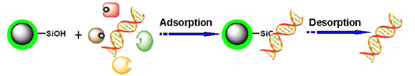 Knowledge & Benefit Tech’s magnetic silica beads have a core-shell structure of magnetic core and silica shell, which are designed for nucleic acid separation and purification. Due to their superparamagnetic properties, the nucleic acids can be directly isolated from complicated biological system by simple mixing of the silica beads and samples.