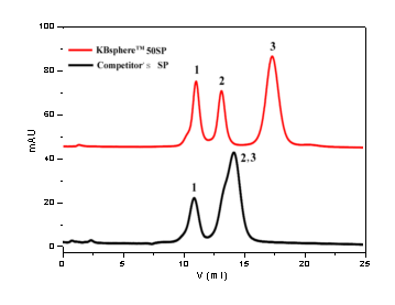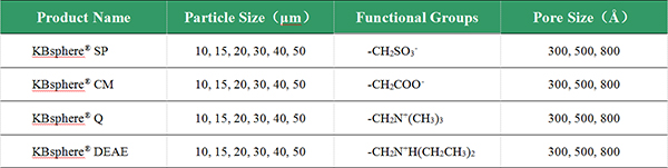 Knowledge & Benefit Tech’s ion exchange chromatography media were prepared by monodisperse, highly crosslinked polyacrylate microspheres. Compared to the traditional agarose based ion exchange chromatography media, Knowledge & Benefit Tech’s ion exchange chromatography media have higher mechanical stability and low back pressure. The porous hydrophilic ion exchange media are produced by first forming a hydrophilic layer on the microspheres. Then, ion exchange functional groups are attached onto the hydrophilic layer. Knowledge & Benefit Tech’s ion exchange chromatography media are ideal for laboratory and process scale purification of proteins, peptides, nucleic acids, antibiotics, and low molecular weight pharmaceuticals.