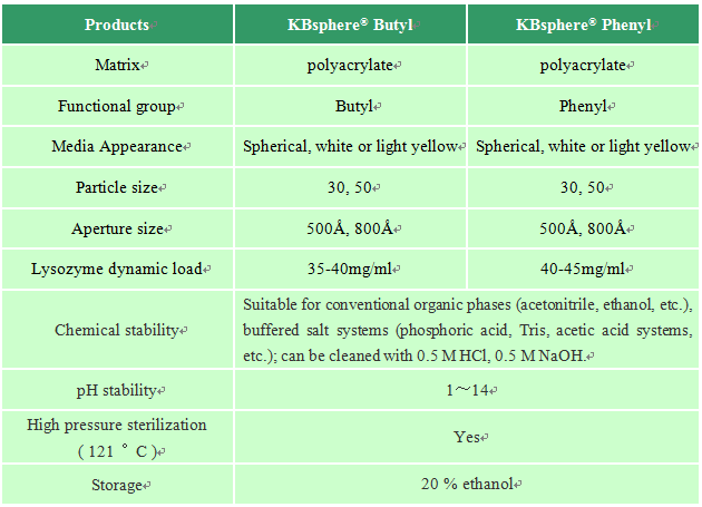 KBsphere® series of hydrophobic chromatography media are based on highly cross-linked polyacrylates with highly uniform particle size and precise pore structure, and have the characteristics of high resolution, low back pressure and high column efficiency.