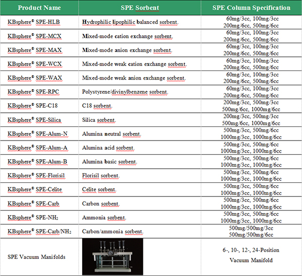 Knowledge & Benefit Tech. has developed the world class technology in microsphere preparation and surface modification for providing a series of highly efficient SPE sorbents. The SPE sorbents have uniform particle sizes, optimized pore size and very high chemical stability. Therefore, Knowledge & Benefit Tech’s SPE sorbents readily satisfy the need for high sensitivity in analyzing different materials including pesticide residues, veterinary drug residues and mycotoxin residues.